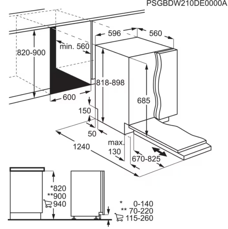 Корзины регулируются по высоте даже при полной загрузке, предусмотрен глубокий ящик MaxiFlex для столовых приборов и кухонных принадлежностей разной формы. Встроенный инверторный двигатель BLDC обеспечивает стабильную и эффективную работу на протяжении всего срока эксплуатации.